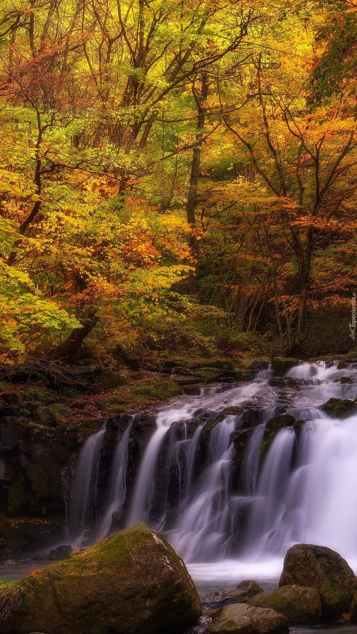 Edytor tapety: Jesienne drzewa przy wodospadzie