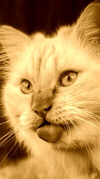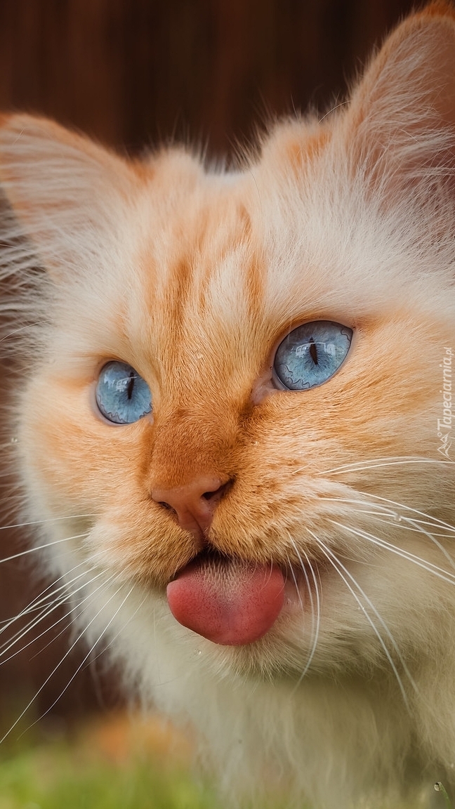 Edytor tapety: Mordka rudawego kota z wystawionym językiem
