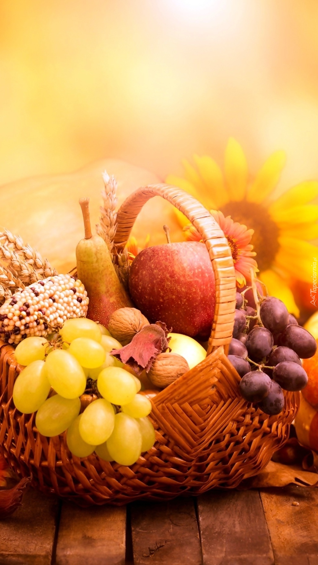 Edytor tapety: Jesienna owocowa kompozycja w koszyku