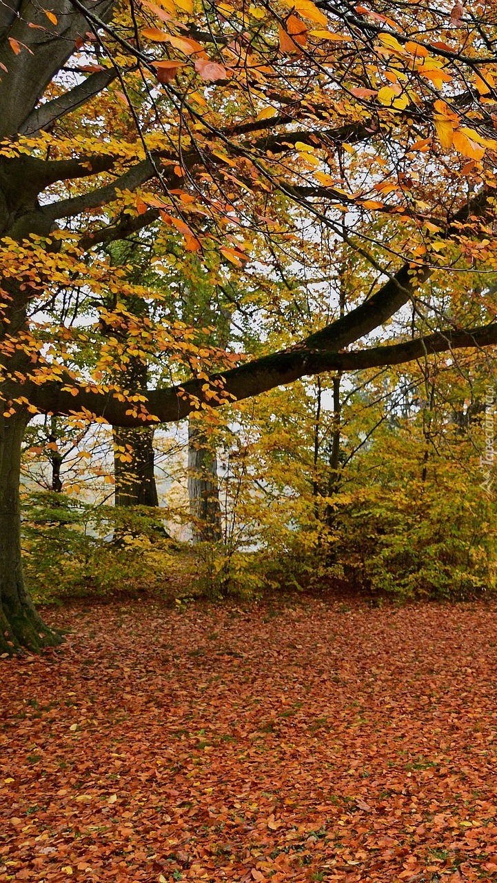 Edytor tapety: Opadłe liście pod drzewem