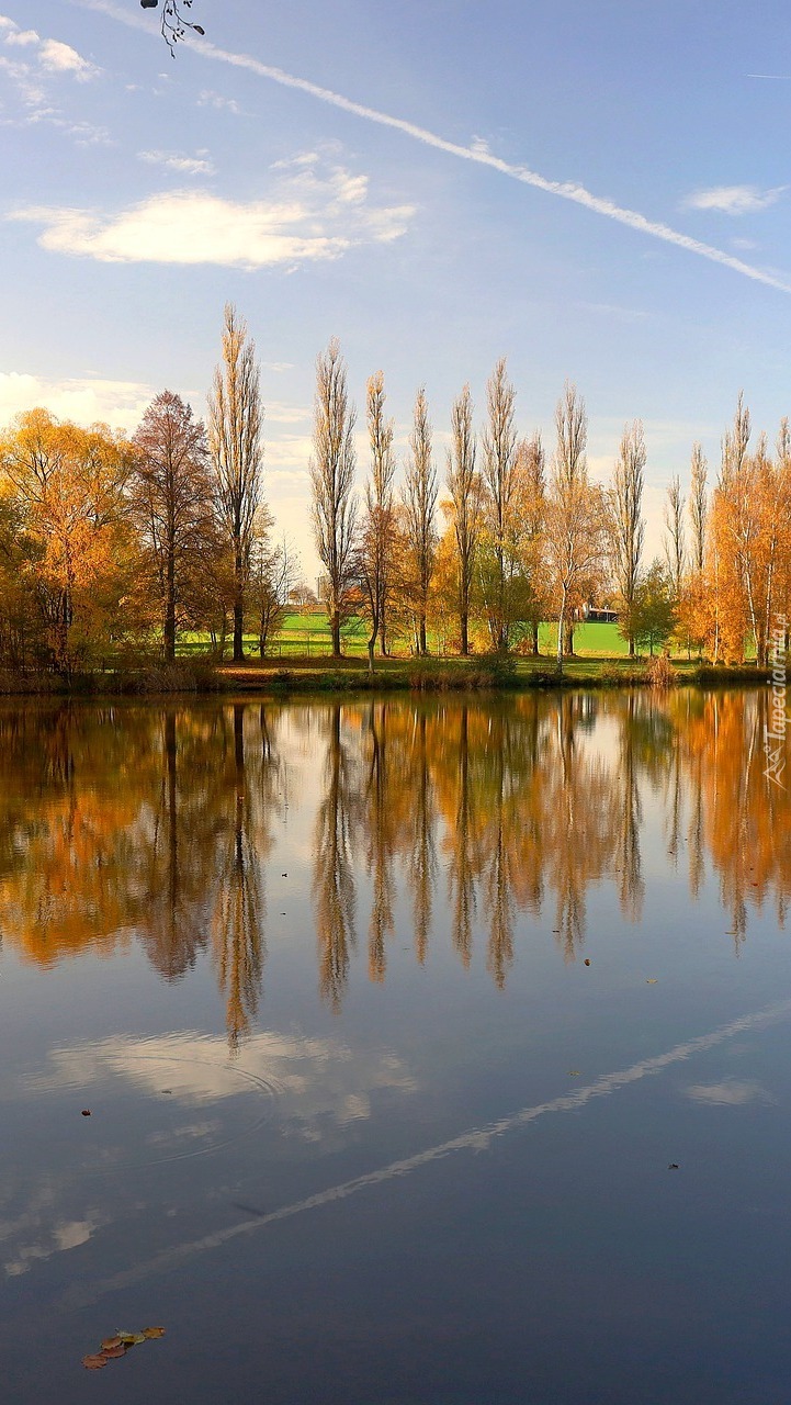 Edytor tapety: Pożółkłe drzewa nad jeziorem