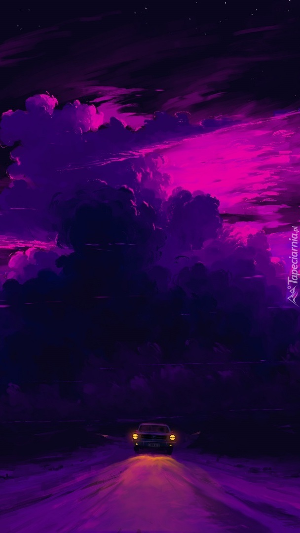 Edytor tapety: Samochód na drodze pod nocnym niebem