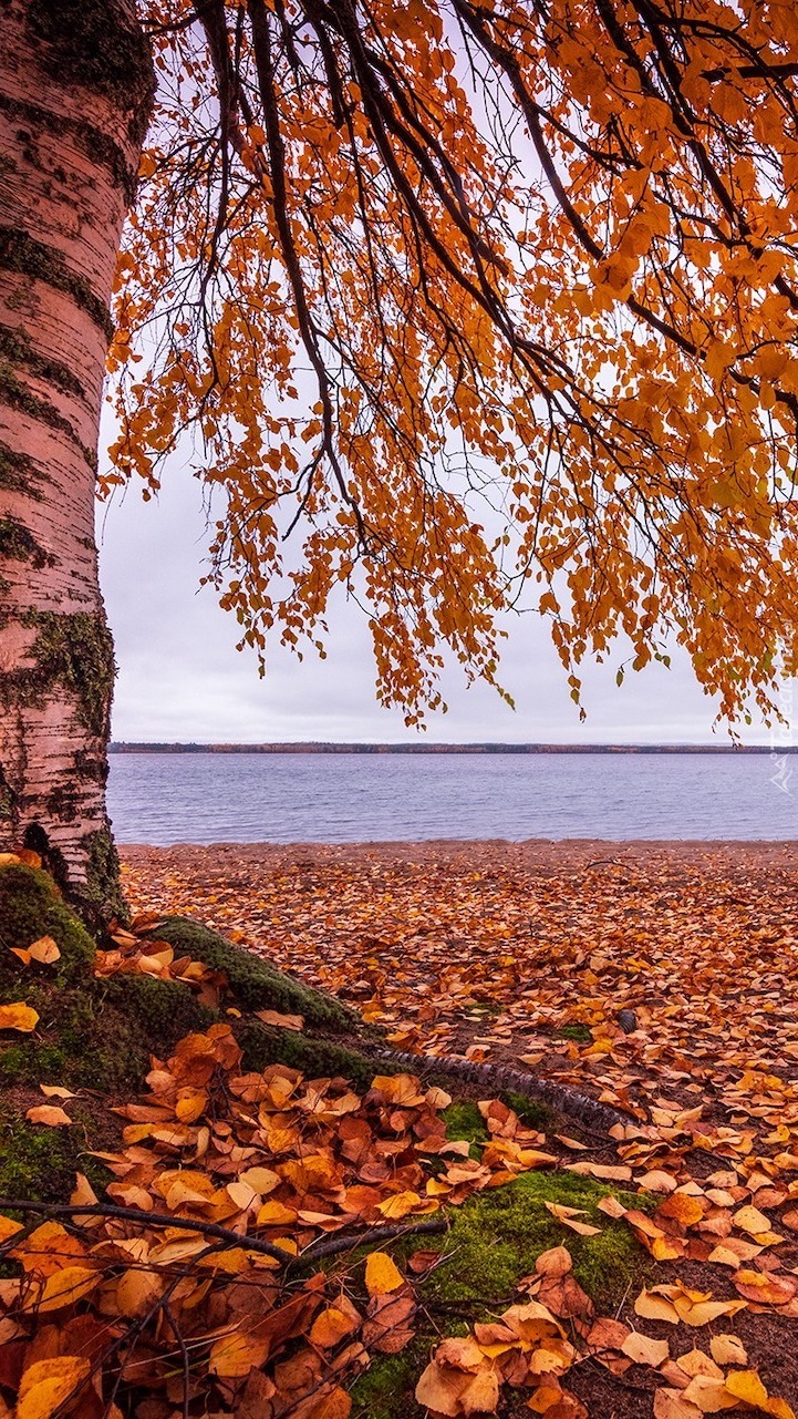 Edytor tapety: Jesienna brzoza nad jeziorem