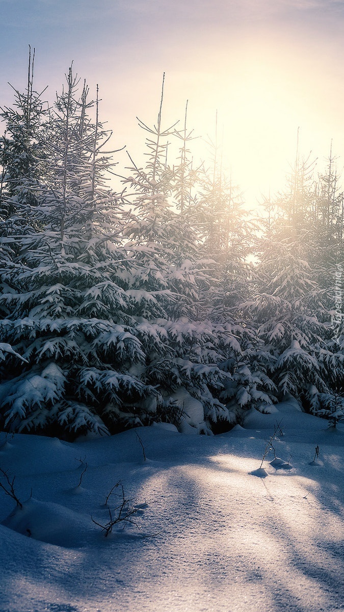 Edytor tapety: Rozświetlone ośnieżone świerki