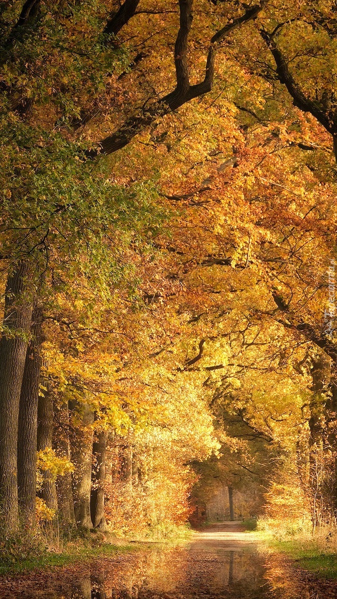 Edytor tapety: Jesienne drzewa po obu stronach kałuży