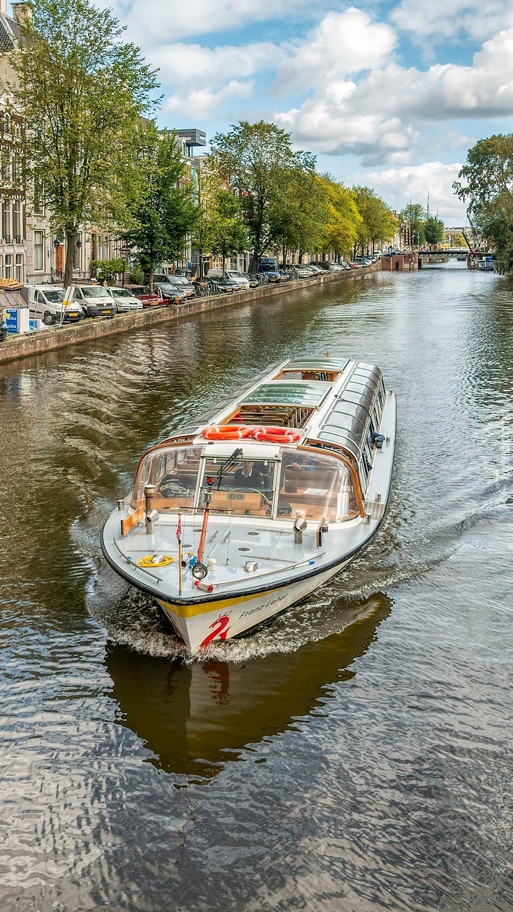 Edytor tapety: Motorówka na kanale w Amsterdamie