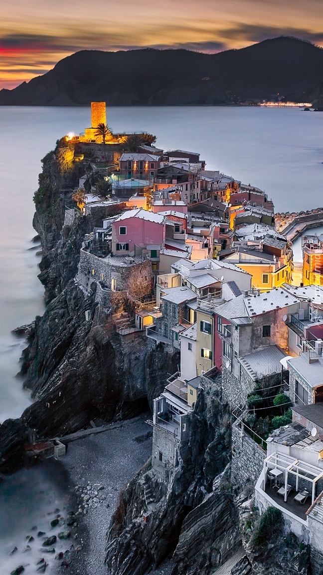 Edytor tapety: Riomaggiore o zachodzie słońca