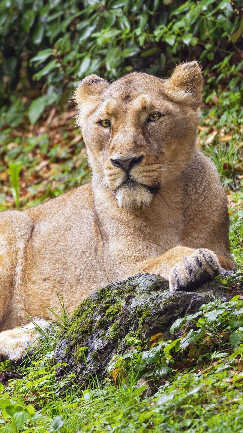 Edytor tapety: Lwica na kamieniu