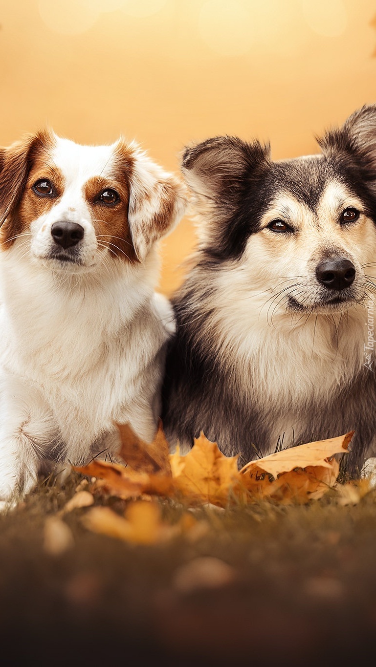 Edytor tapety: Dwa psy w jesiennych liściach