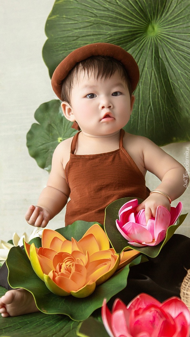 Edytor tapety: Chłopiec wśród kwiatów lotosu