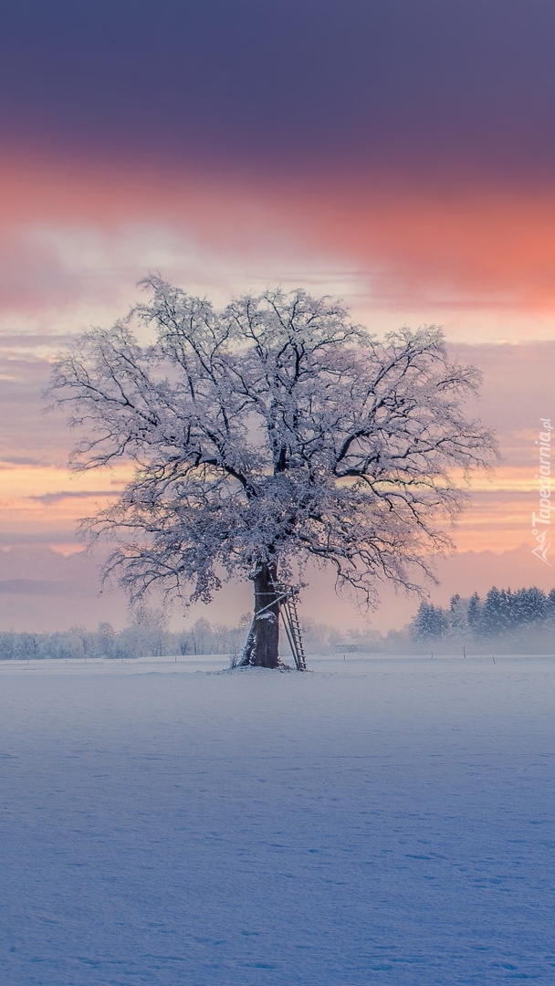 Edytor tapety: Ośnieżone samotne drzewo na zaśnieżonym polu