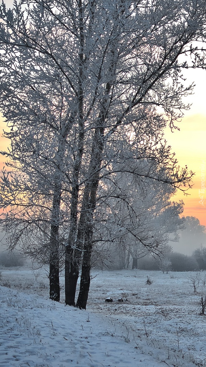 Edytor tapety: Oszronione drzewa na zaśnieżonej łące