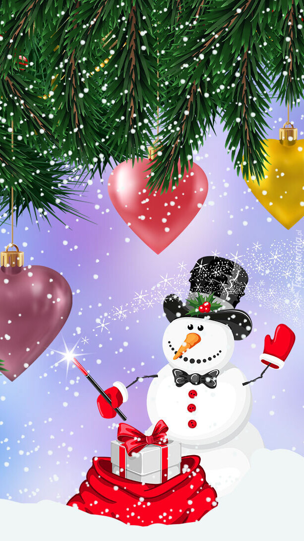 Edytor tapety: Bałwan z prezentem pod choinką