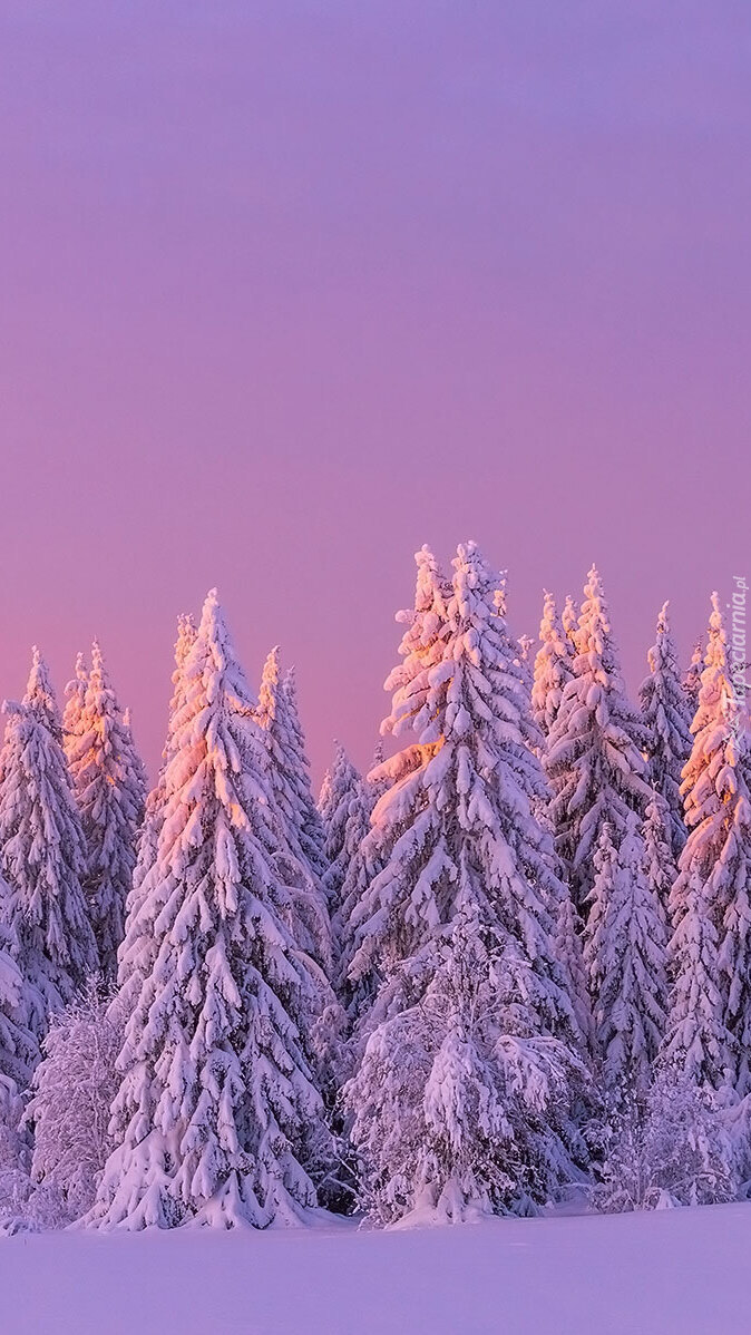 Edytor tapety: Zaróżowione niebo nad ośnieżonymi drzewami