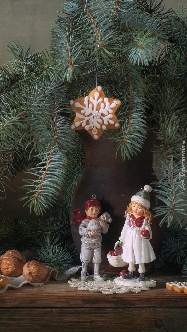 Edytor tapety: Figurki pod świerkowymi gałązkami