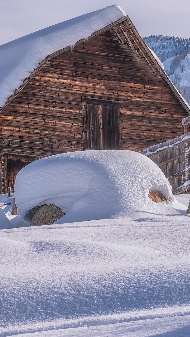 Edytor tapety: Zasypana śniegiem szopa
