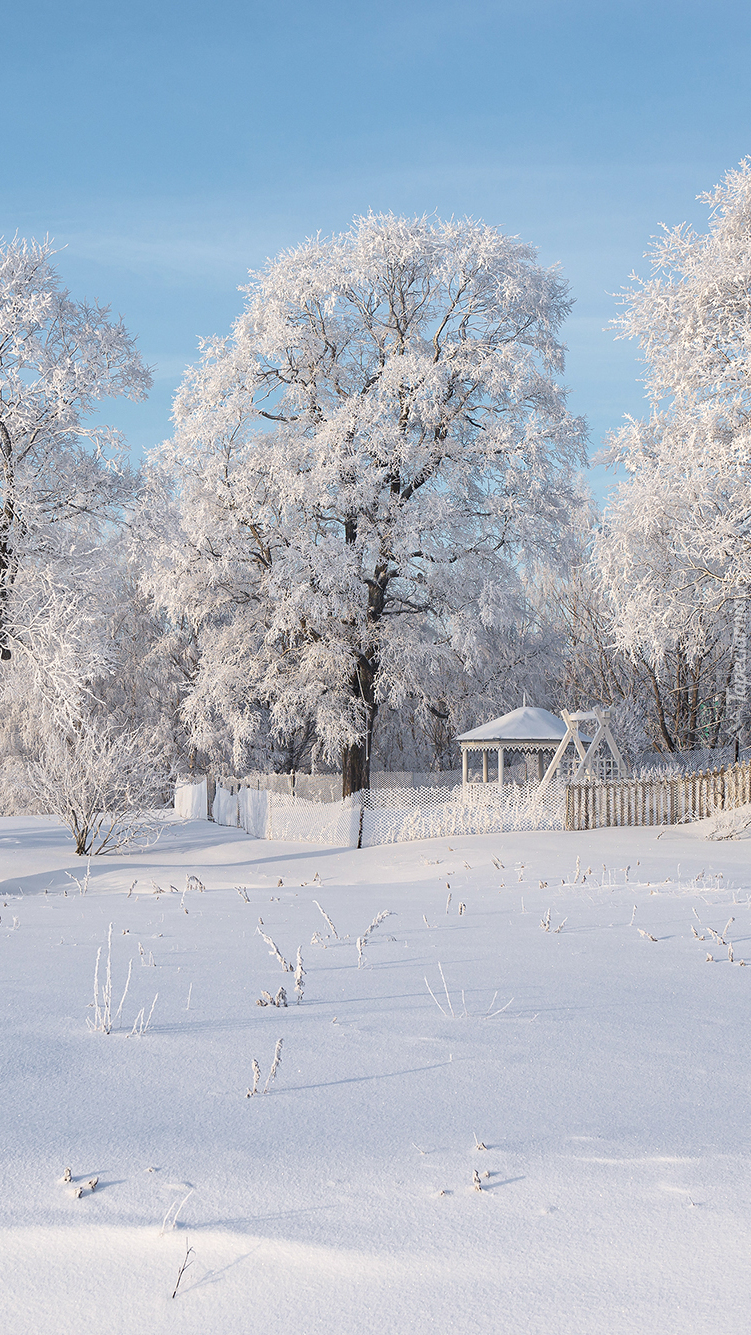 Edytor tapety: Altana pod ośnieżonymi drzewami