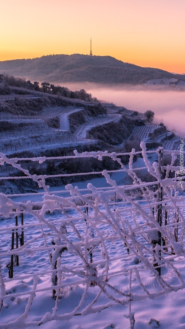 Edytor tapety: Ośnieżone winnice na wzgórzach