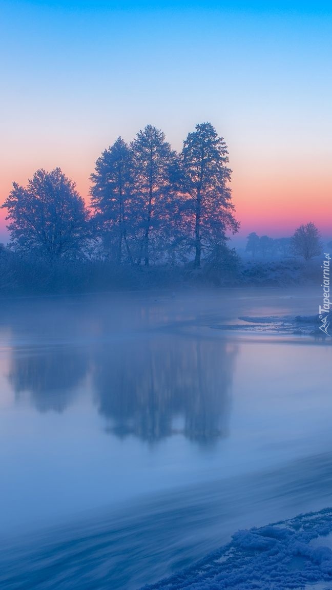 Edytor tapety: Drzewa na brzegach rzeki we mgle