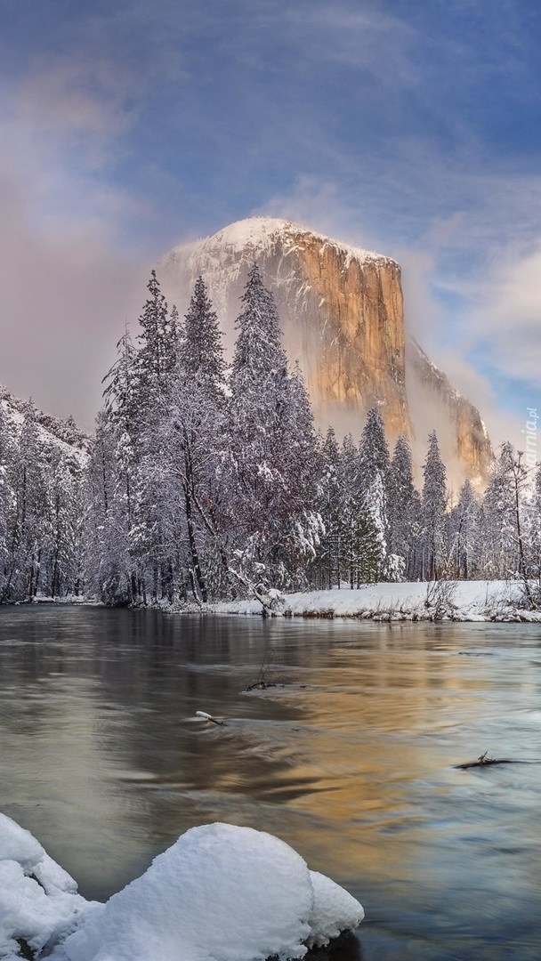 Edytor tapety: Ośnieżone drzewa i góra El Capitan