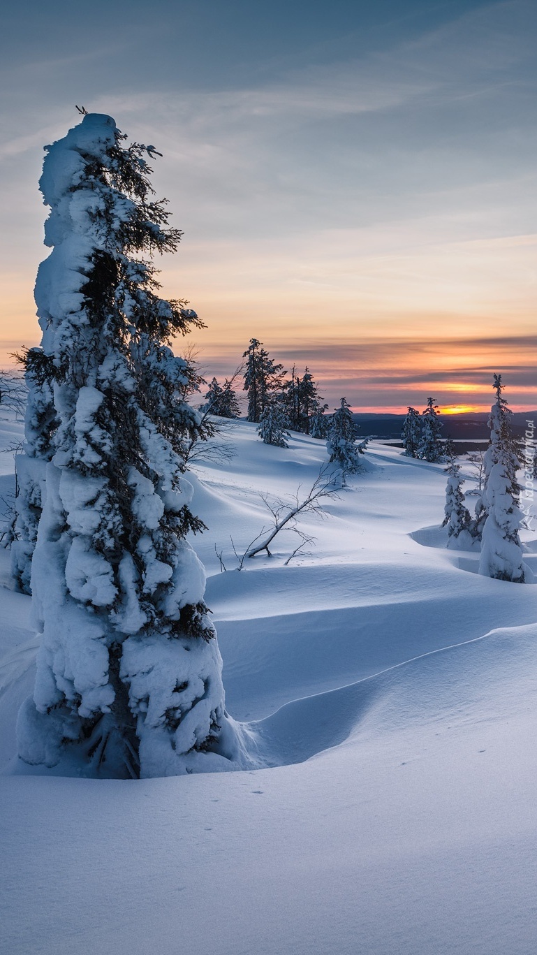 Edytor tapety: Ośnieżone drzewa na wzgórzu