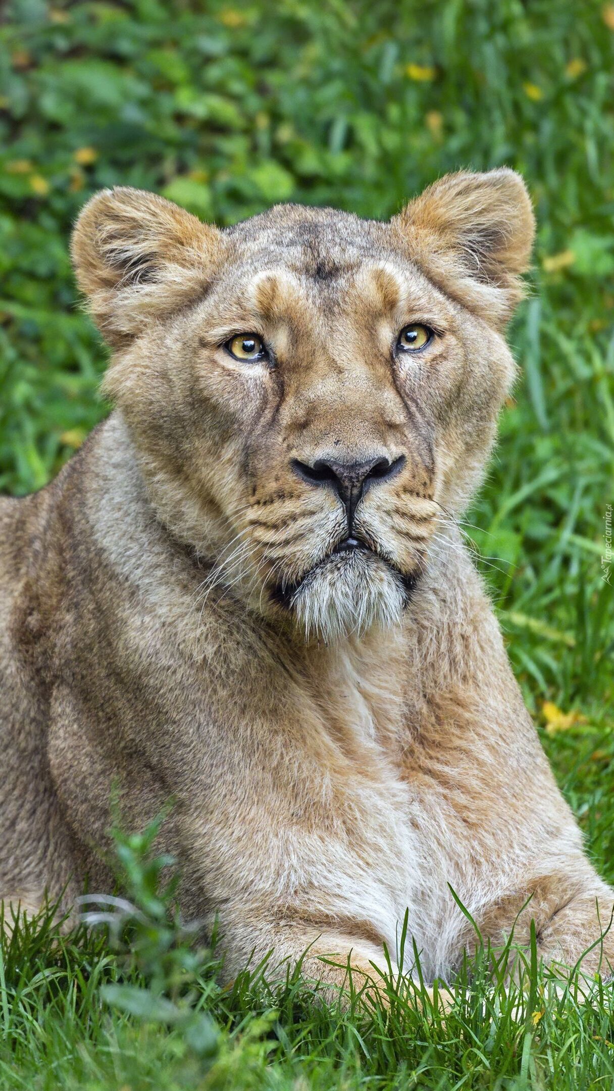 Edytor tapety: Lwica na trawie