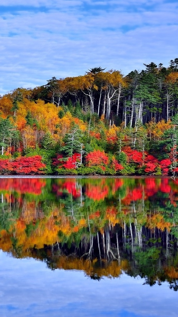 Edytor tapety: Drzewa nad jeziorem Shirakoma