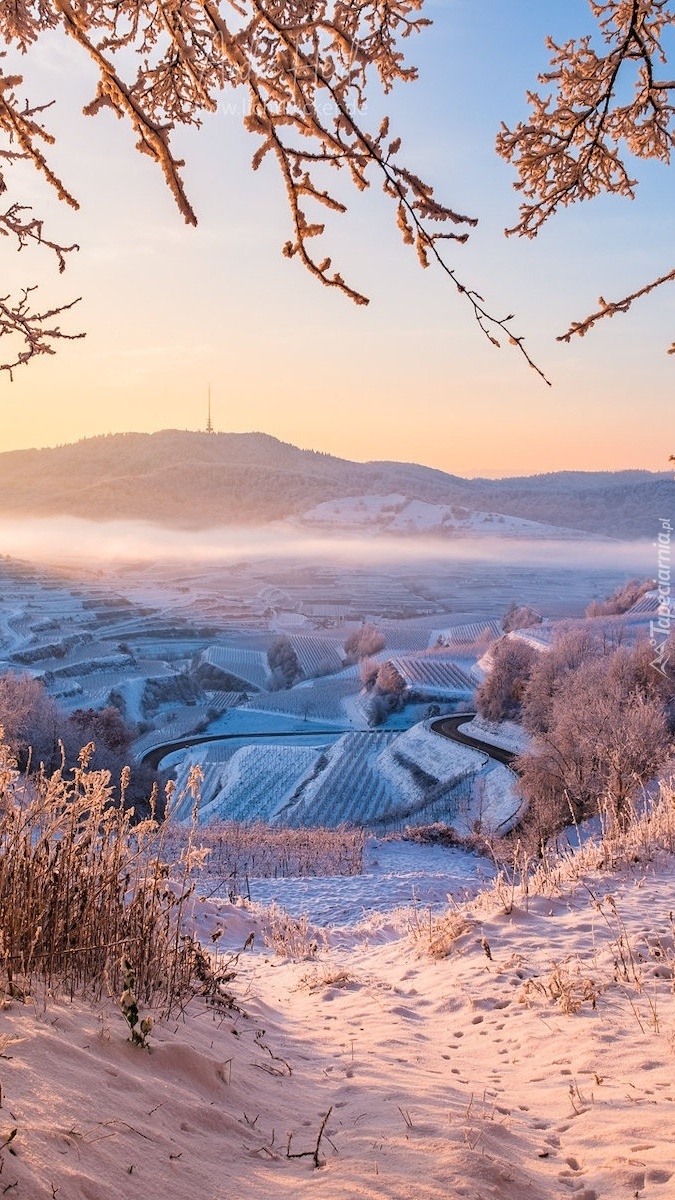 Edytor tapety: Ośnieżone winnice na wzgórzach Kaiserstuhl