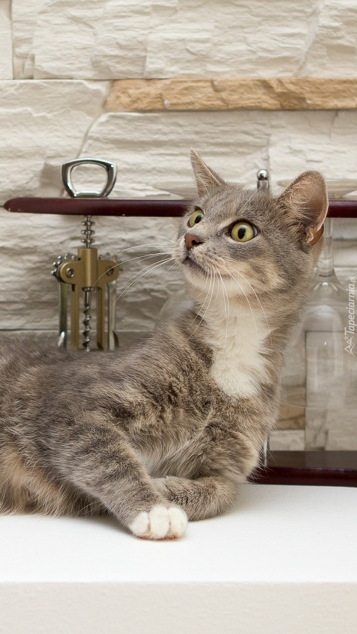 Edytor tapety: Mały kotek na kuchennym blacie