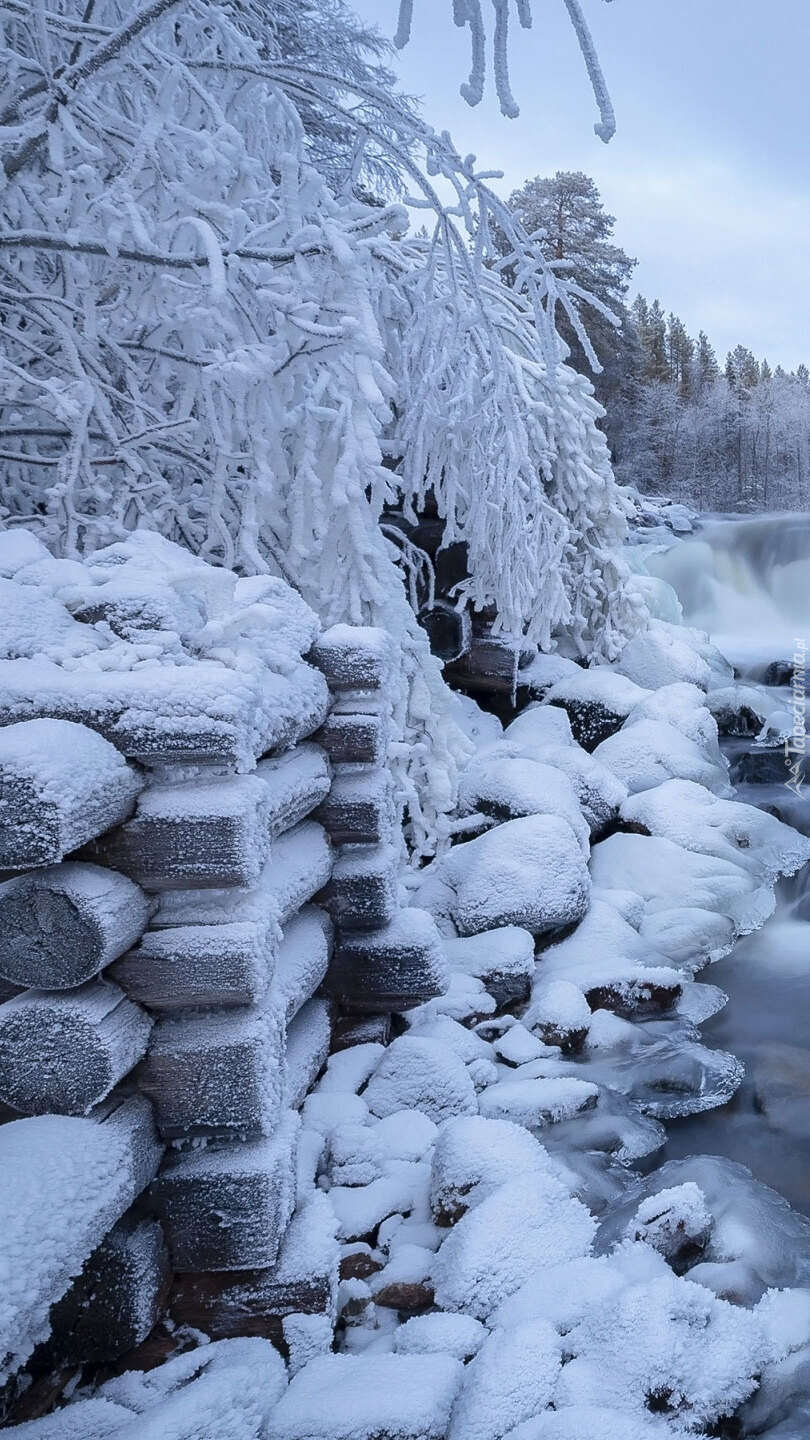 Edytor tapety: Ośnieżone gałęzie i kłody