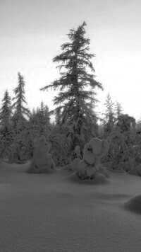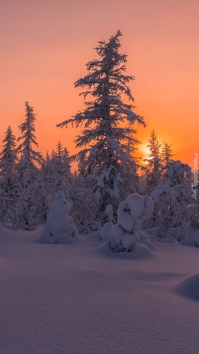 Edytor tapety: Ośnieżone drzewa o zachodzie słońca