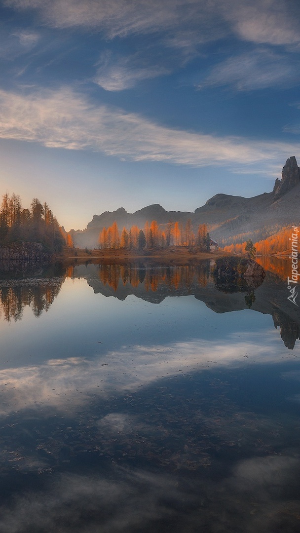 Edytor tapety: Pożółkłe drzewa nad jeziorem Lago Federa