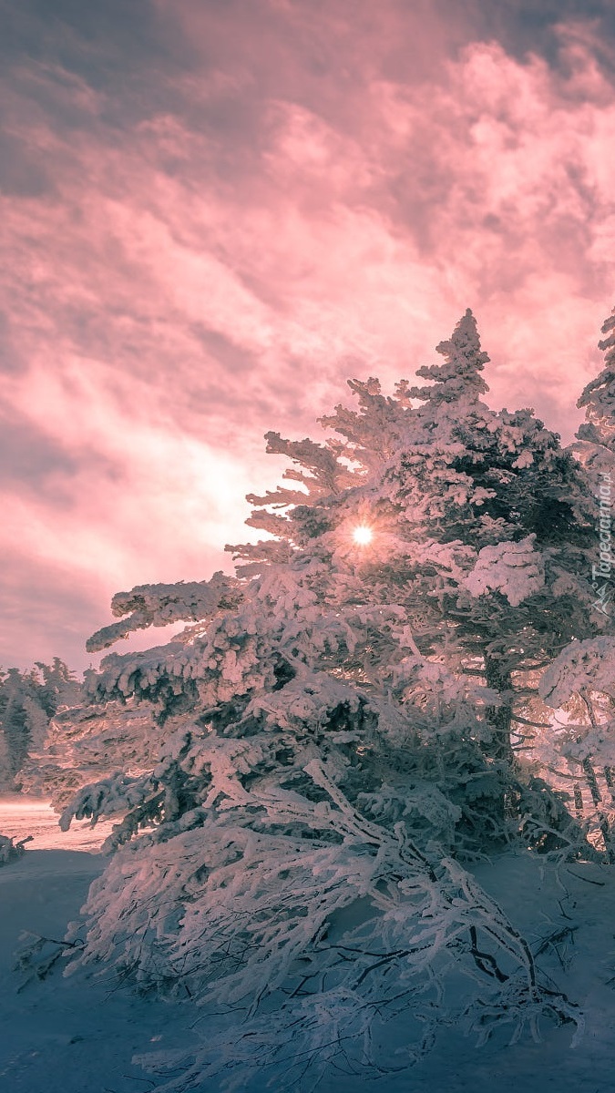 Edytor tapety: Rozświetlone słońcem ośnieżone drzewa