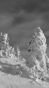 Edytor tapety: Drzewa na wzgórzu pokryte śniegiem