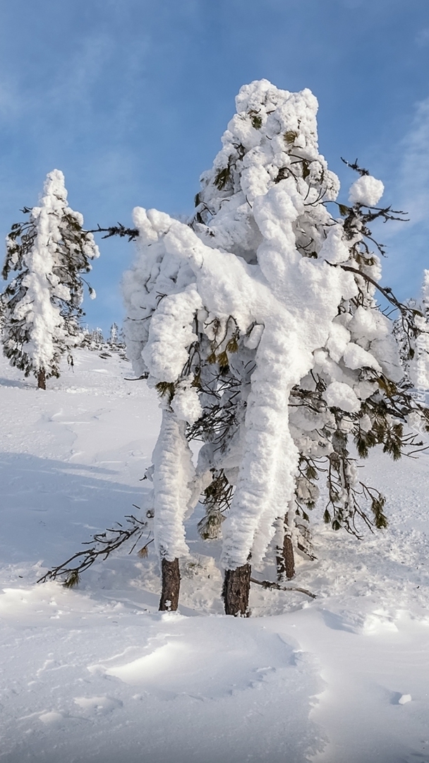 Edytor tapety: Rozświetlone zasypane śniegiem drzewa