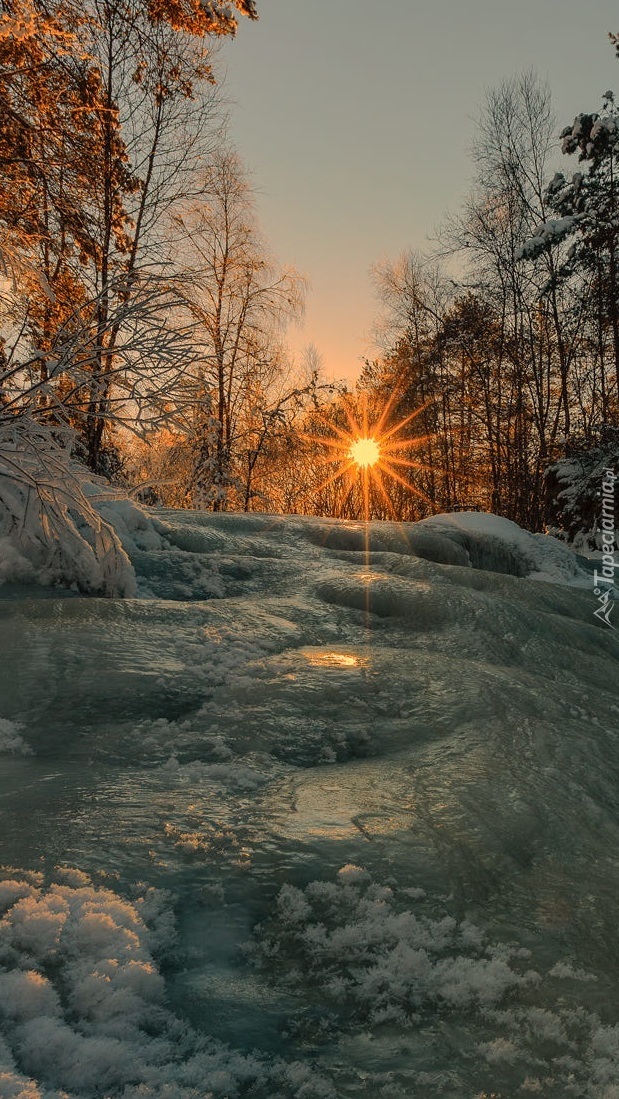Edytor tapety: Promienie słońca nad zamarzniętą rzeką