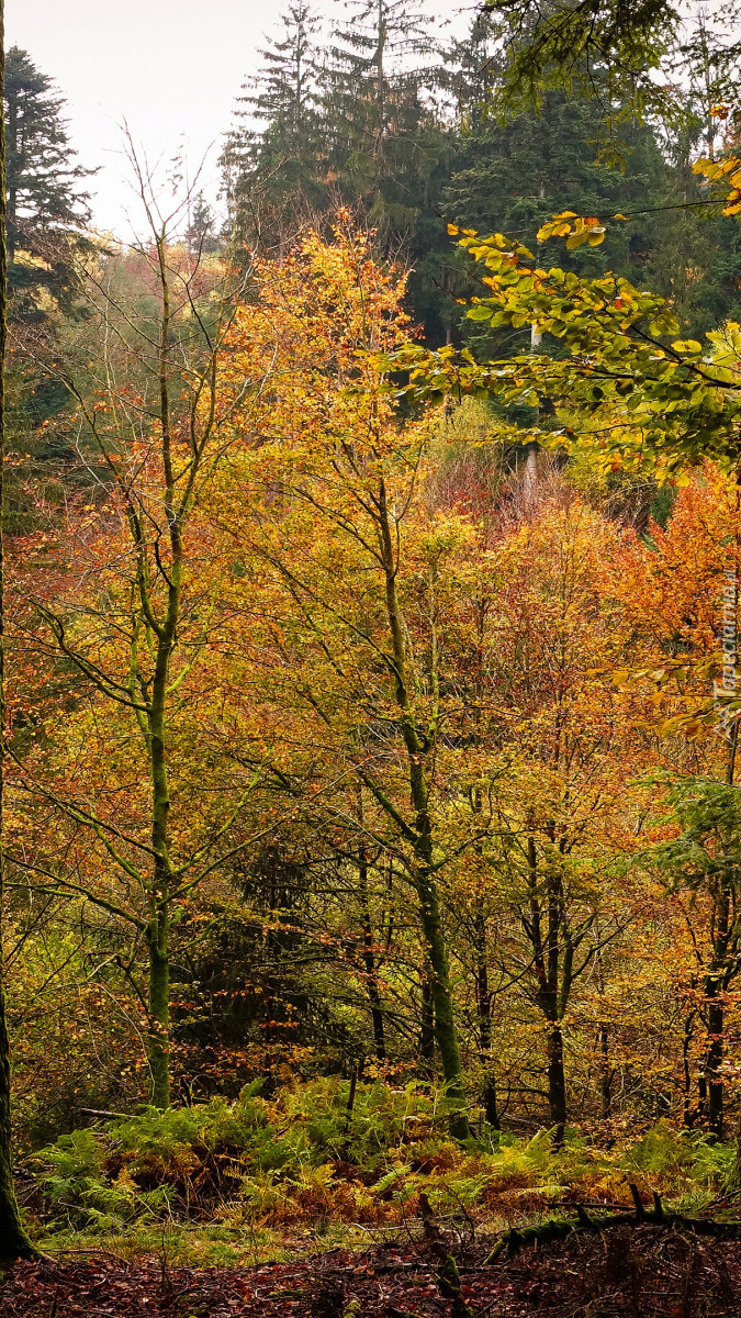 Edytor tapety: Pożółkłe drzewa w lesie