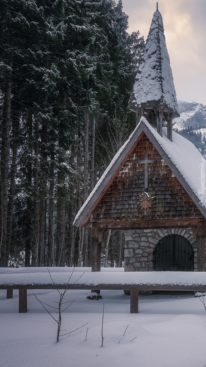 Edytor tapety: Kapliczka Wankerfleck zimową porą