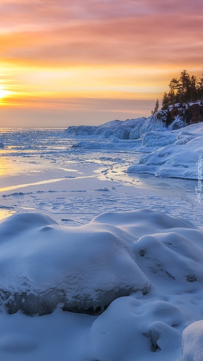 Edytor tapety: Ośnieżone skały nad jeziorem Superior Lake