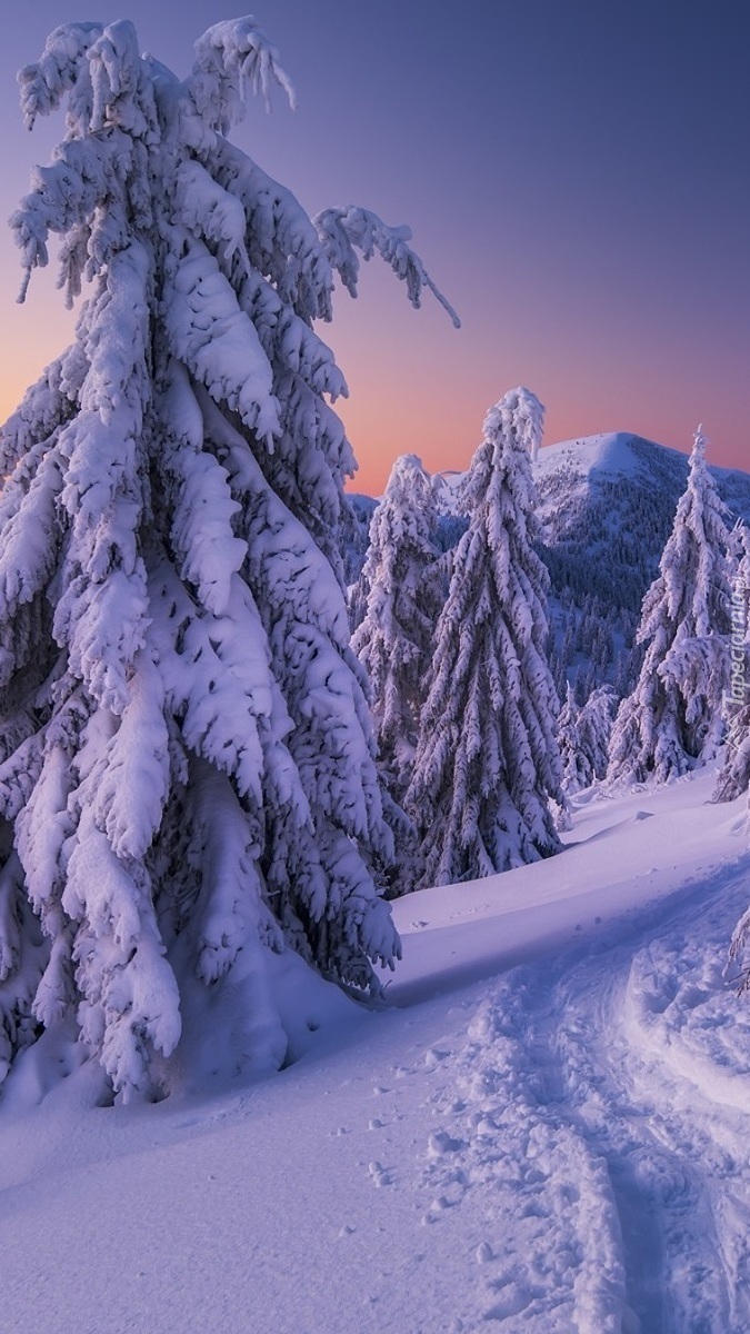 Edytor tapety: Ślady w śniegu obok drzew