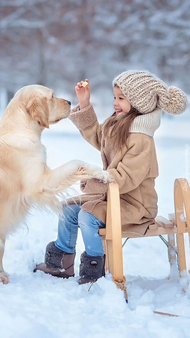 Edytor tapety: Dziewczynka karmiąca golden retrievera