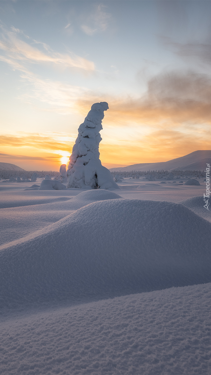 Edytor tapety: Ośnieżone drzewo w zaspie