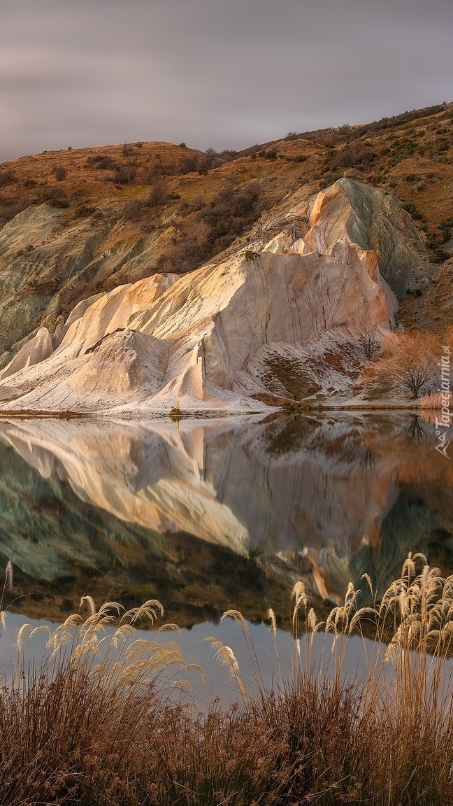 Edytor tapety: Trawa sucha przy rzece w górach