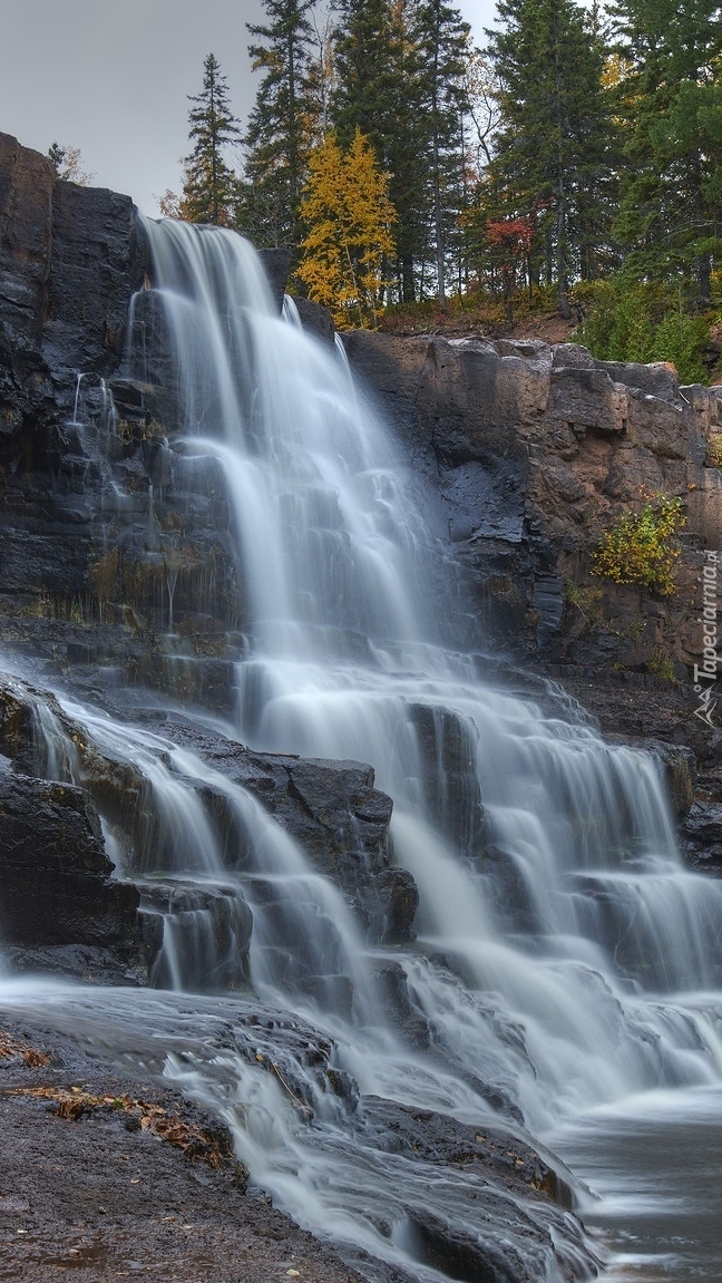 Edytor tapety: Wodospad Gooseberry Falls spływający po skałach