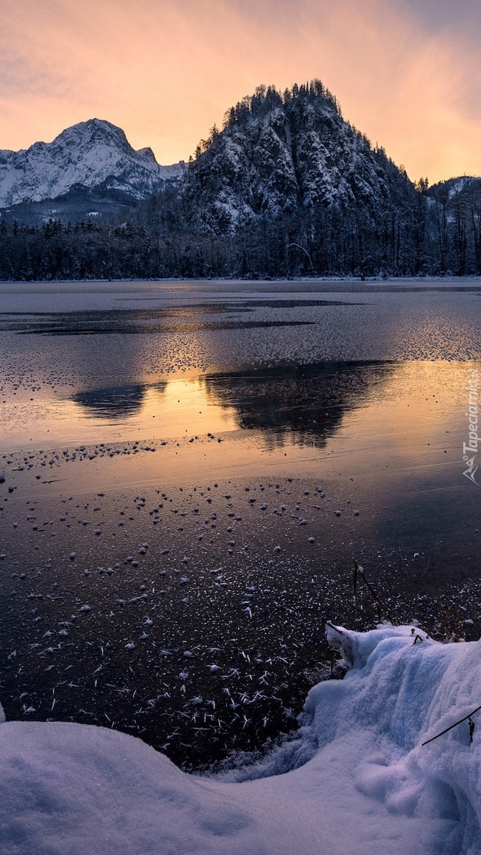 Edytor tapety: Pokryte lodem górskie jezioro Almsee