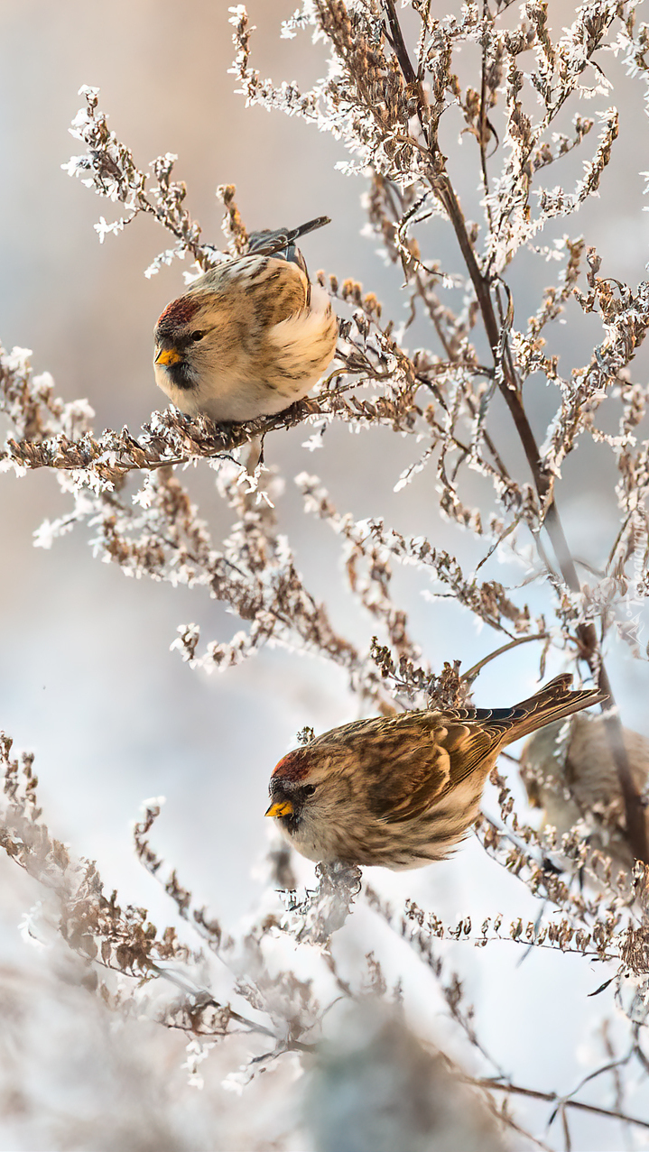 Edytor tapety: Dwie czeczotki na oszronionej roślinie