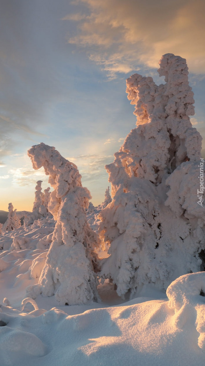 Edytor tapety: Ośnieżone drzewa w zaspach na polu