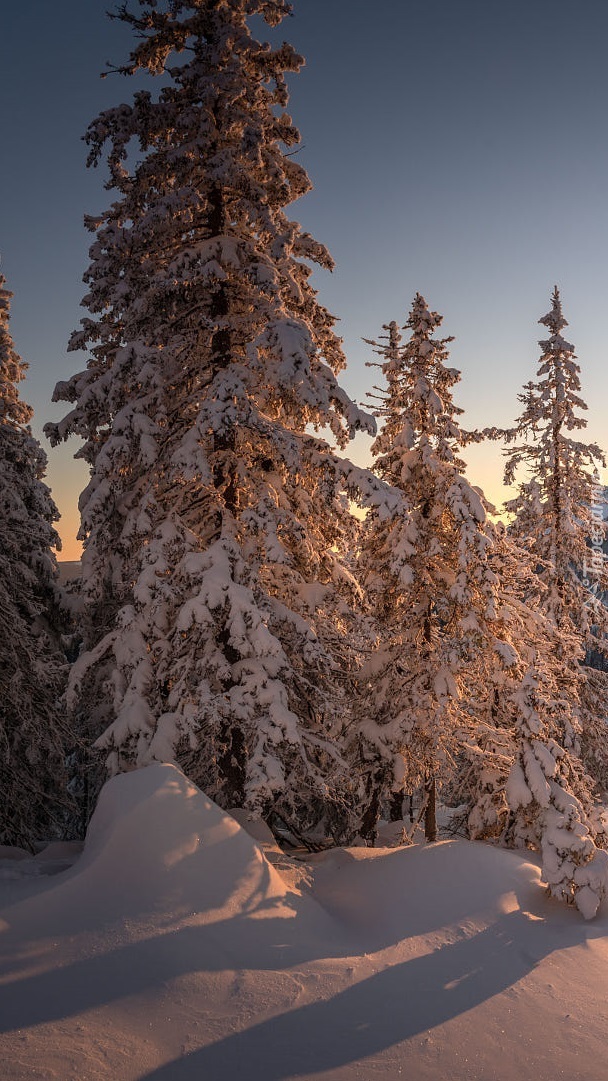 Edytor tapety: Ośnieżone drzewa w lesie