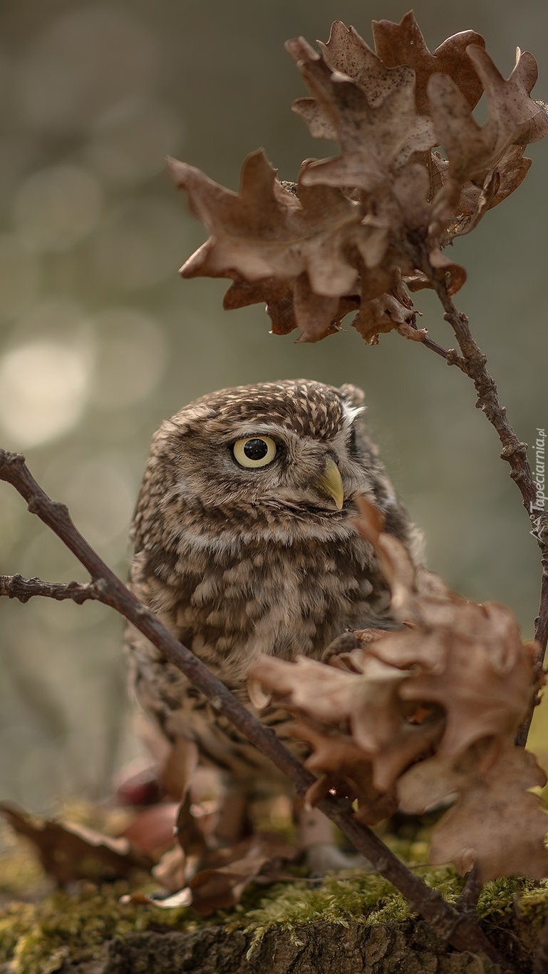 Edytor tapety: Pójdźka zwyczajna obok jesiennych gałązek