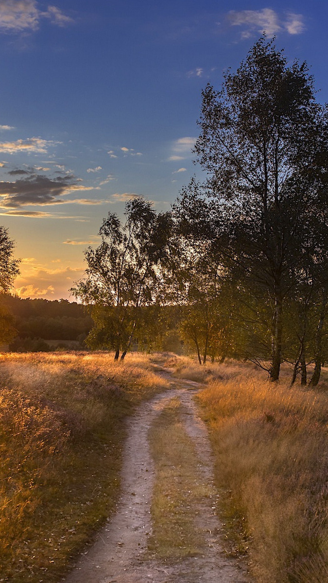 Edytor tapety: Drzewa przy polnej drodze